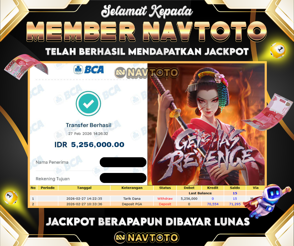 SELAMAT KEPADA MEMBER NAVTOTO! user id : su****n6 Telah berhasil mendapatkan jackpot di game Geisha’s Revenge! Kemenangan langsung...