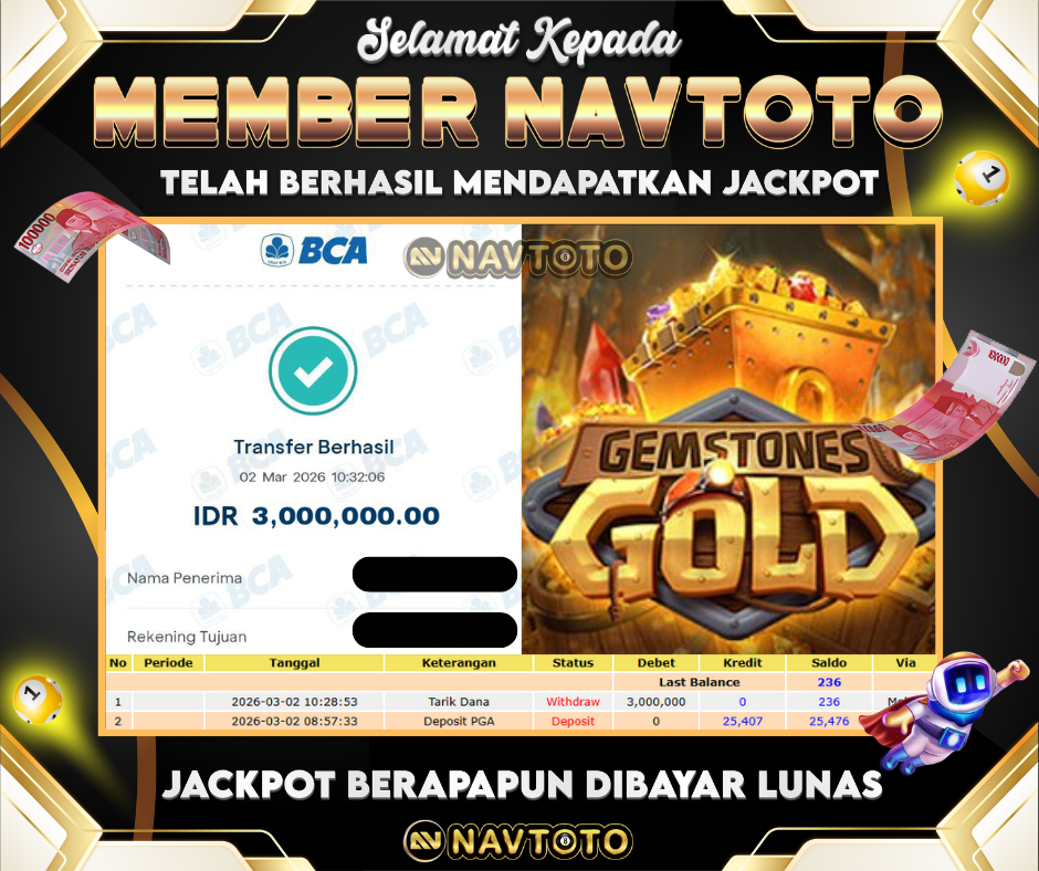 Bukti Jackpot GemStone Gold Rp 3.000.000